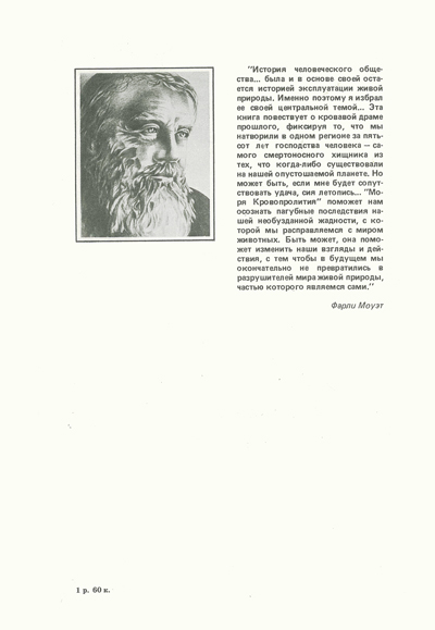 Многие книги Фарли Моуэта — прогрессивного канадского общественного деятеля, биолога и писателя — хорошо известны нашим читателям. Новая книга пронизана болью за судьбу животного мира Океана, беззащитного перед все возрастающей технической мощью его эксплуататоров.
