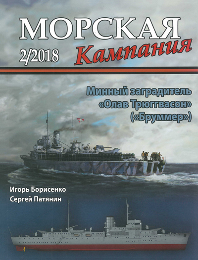 Минные заградители не избалованы вниманием широкой публики, хотя среди них зачастую встречаются очень интересные корабли - именно такому посвящен данный номер. Норвежский минзаг «Олав Трюггвасон» стал известным еще в 1930-е годы благодаря своей необычной силовой установке. Во время Второй мировой войны корабль отличился при защите военно-морской базы Хортен от германского вторжения, однако был захвачен немцами, включен в состав Кригсмарине под названием «Бруммер», принимал активное участие в минозаградительных операциях, в том числе в операционной зоне советского флота, и погиб под бомбами авиации союзников.
