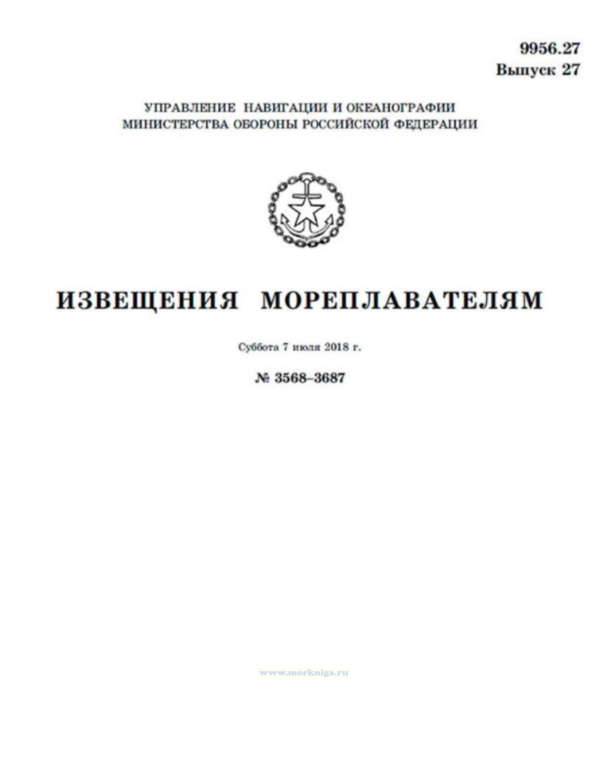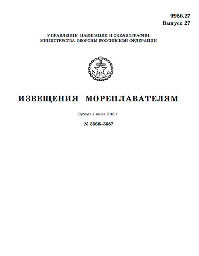 Извещения мореплавателям. Выпуск 27. № 3568-3687 (от 7 июля 2018 г.) Адм. 9956.27