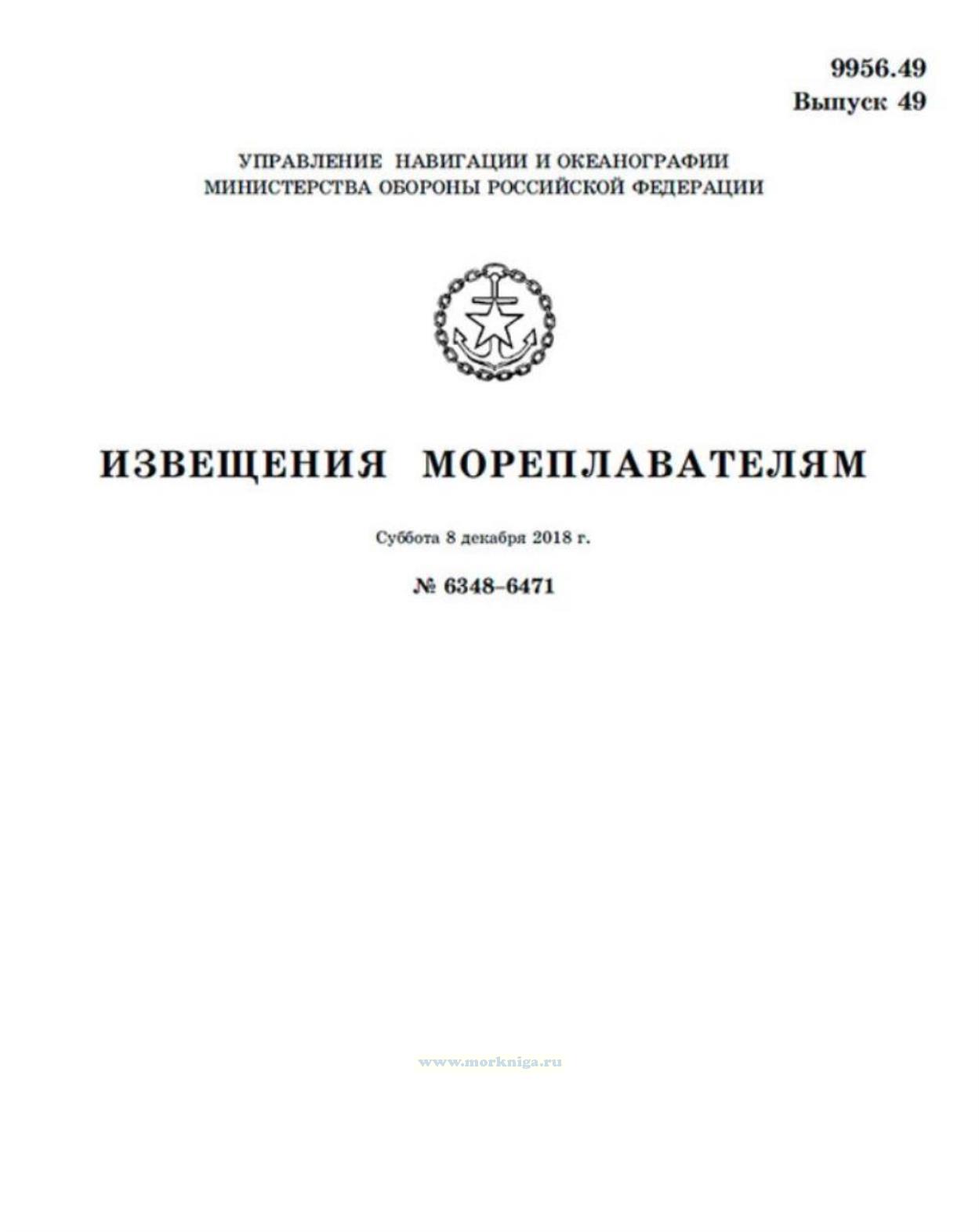 Извещения мореплавателям. Выпуск 49. № 6348-6471 (от 8 декабря 2018 г.) Адм. 9956.49