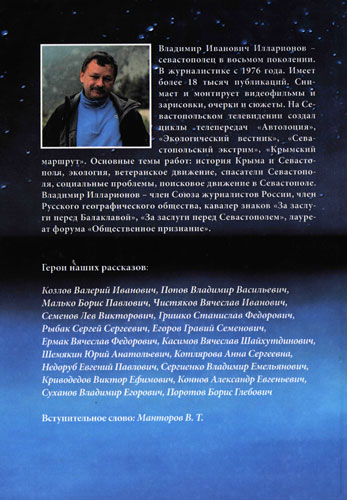 К великому сожалению, с каждым днем ряды ветеранов-подводников редеют, и с каждым днем их становится все меньше и меньше. Вместе с ними уходят бесценные крупинки воспоминаний, их боевой опыт службы в защиту своего народа. Большая заслуга Владимира Илларионова в том, что он находит ветеранов, убеждает их в необходимости рассказа, делится их воспоминаниями с широким кругом аудитории.