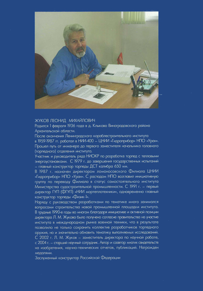Книга, написанная к. т. н. Л. Н. Ушениным, посвящена 60-летию ОАО «НИИ мортеплотехники» и основана на массе архивных материалов, а также устных и письменных воспоминаний сотрудников и ветеранов предприятия. В книге рассказывается об истории института, разработках морского оружия и его создателях. Автор намеренно сохраняет специальную терминологию прошлых лет, чтобы читатель мог проникнуться духом того времени, о котором идет рассказ. Тактико-технические характеристики торпед заимствованы из публикаций в открытой печати.