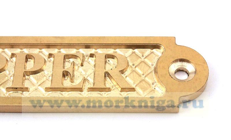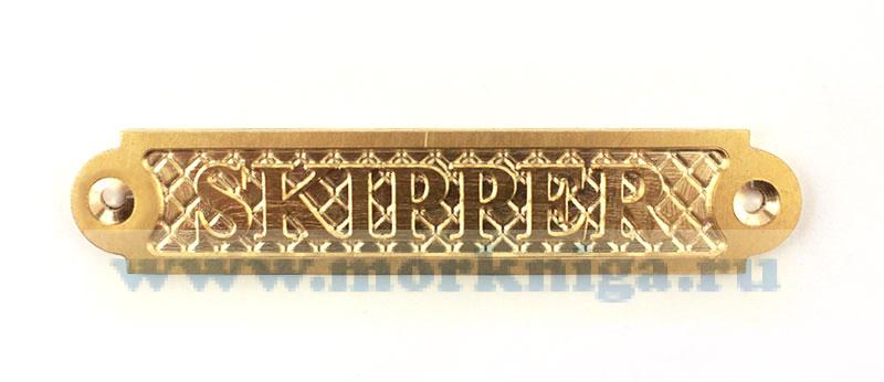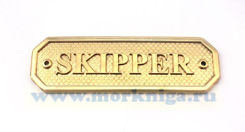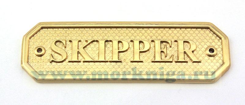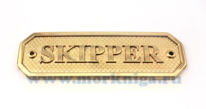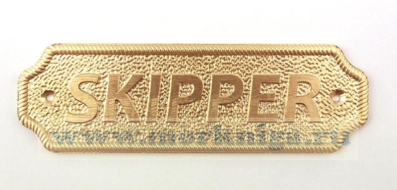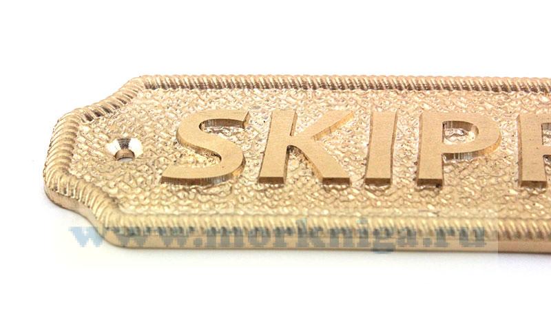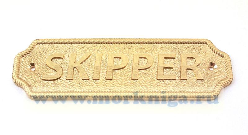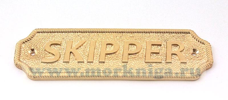 Табличка "Skipper" (в переводе с английского - капитан парусного судна) создана в привлекательном золотистом цвете, служит одновременно украшением и информационным указателем.