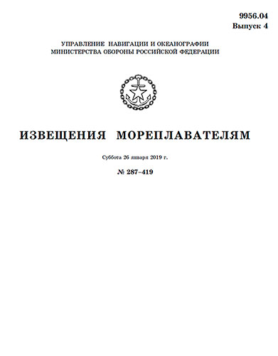Извещения мореплавателям. Выпуск 4. № 287-419 (от 26 января 2019 г.) Адм. 9956.04