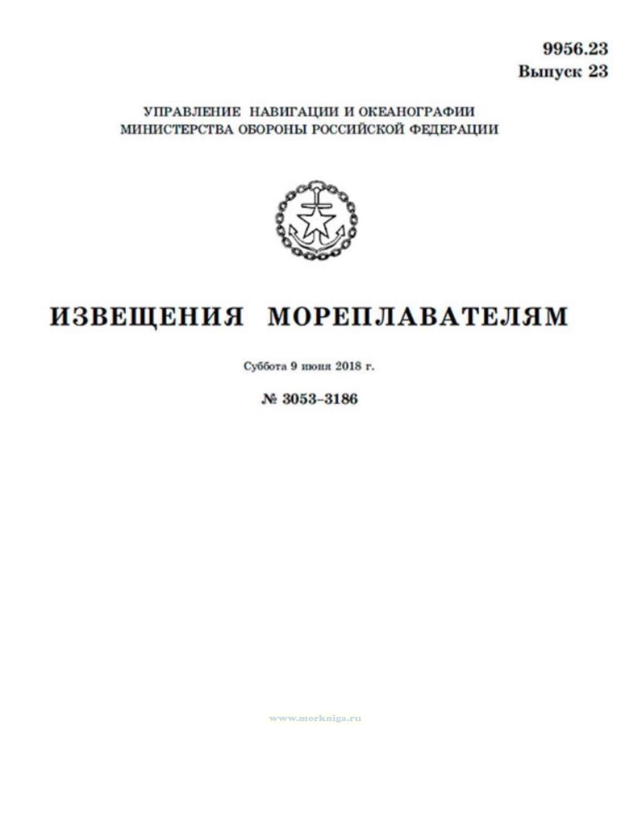 Извещения мореплавателям. Выпуск 23. № 3053-3186 (от 9 июня 2018 г.) Адм. 9956.23