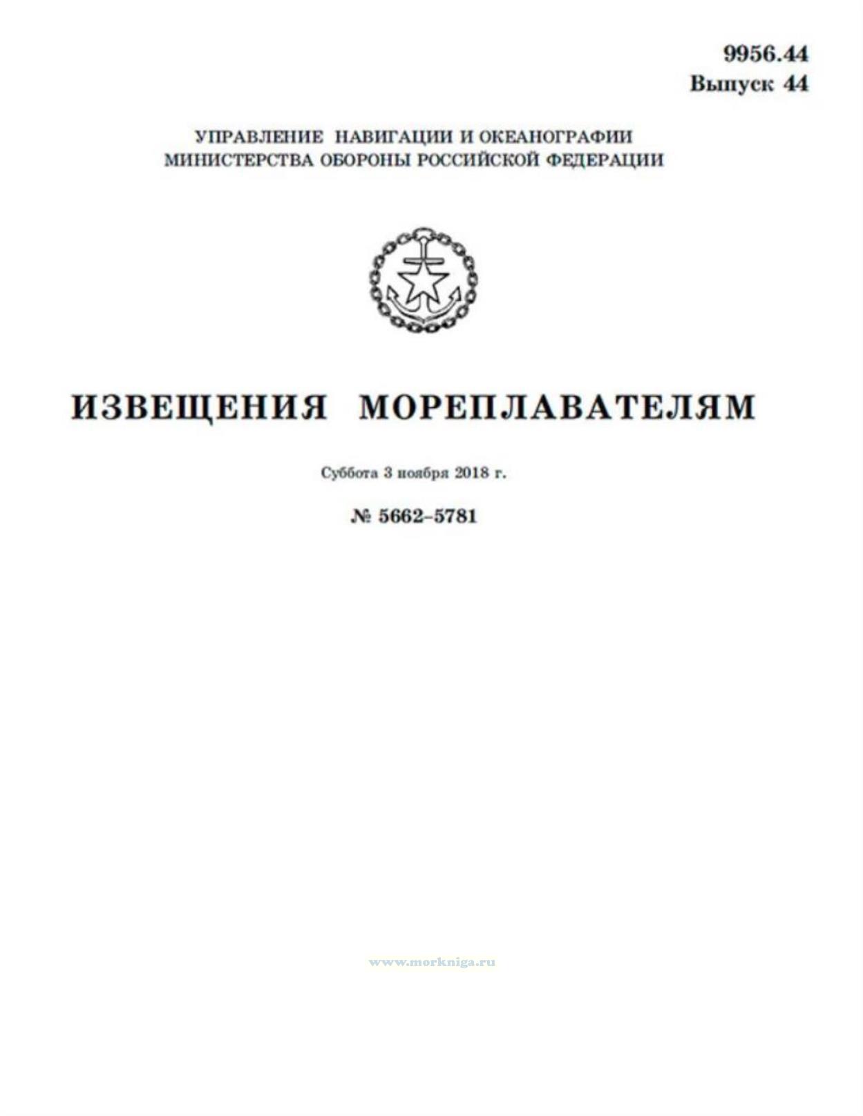 Извещения мореплавателям. Выпуск 44. № 5662-5781 (от 3 ноября 2018 г.) Адм. 9956.44