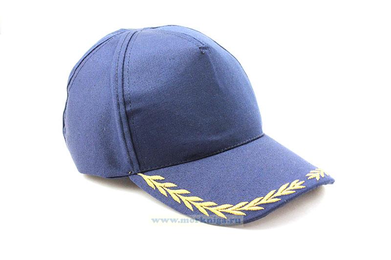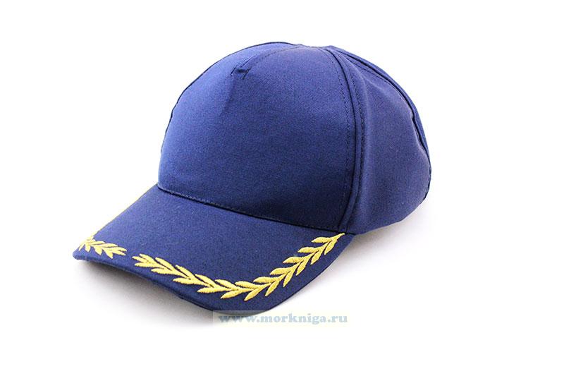 Бейсболка синяя с вышивкой только на козырьке в виде колоска (ветви).