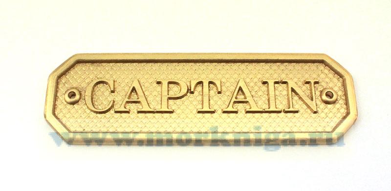 Табличка "Captain" (в переводе с английского - капитан) создана в золотистом цвете, является одновременно украшением и информационным указателем.