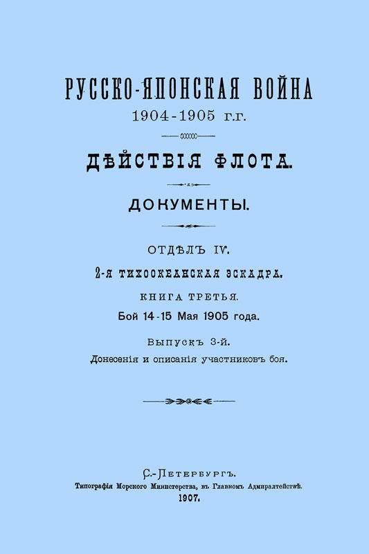 Русско-японская война 1904-1905 гг.. Действия флота. Документы. Отдел IV. 2-я Тихоокеанская эскадра. Книга третья. Бой 14-15 мая 1905 года. Выпуск 3-й. Донесения и описания участников боя