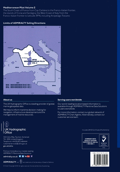 Often referred to as Pilots, Sailing Directions are designed for use by the merchant mariner on all classes of ocean-going vessels with essential information on all aspects of navigation. Sailing Directions are complementary to Admiralty Standard Nautical Charts and provide worldwide coverage in 74 volumes. Each publication contains quality colour photography and views, as well as information on navigational hazards, buoyage, meteorological data, details of pilotage, regulations, port facilities and guides to major port entry. New Editions of Admiralty Sailing Directions are published on a regular basis. Navigationally significant information for these publications is issued via the Admiralty Notices to Mariners weekly bulletin (Section IV).