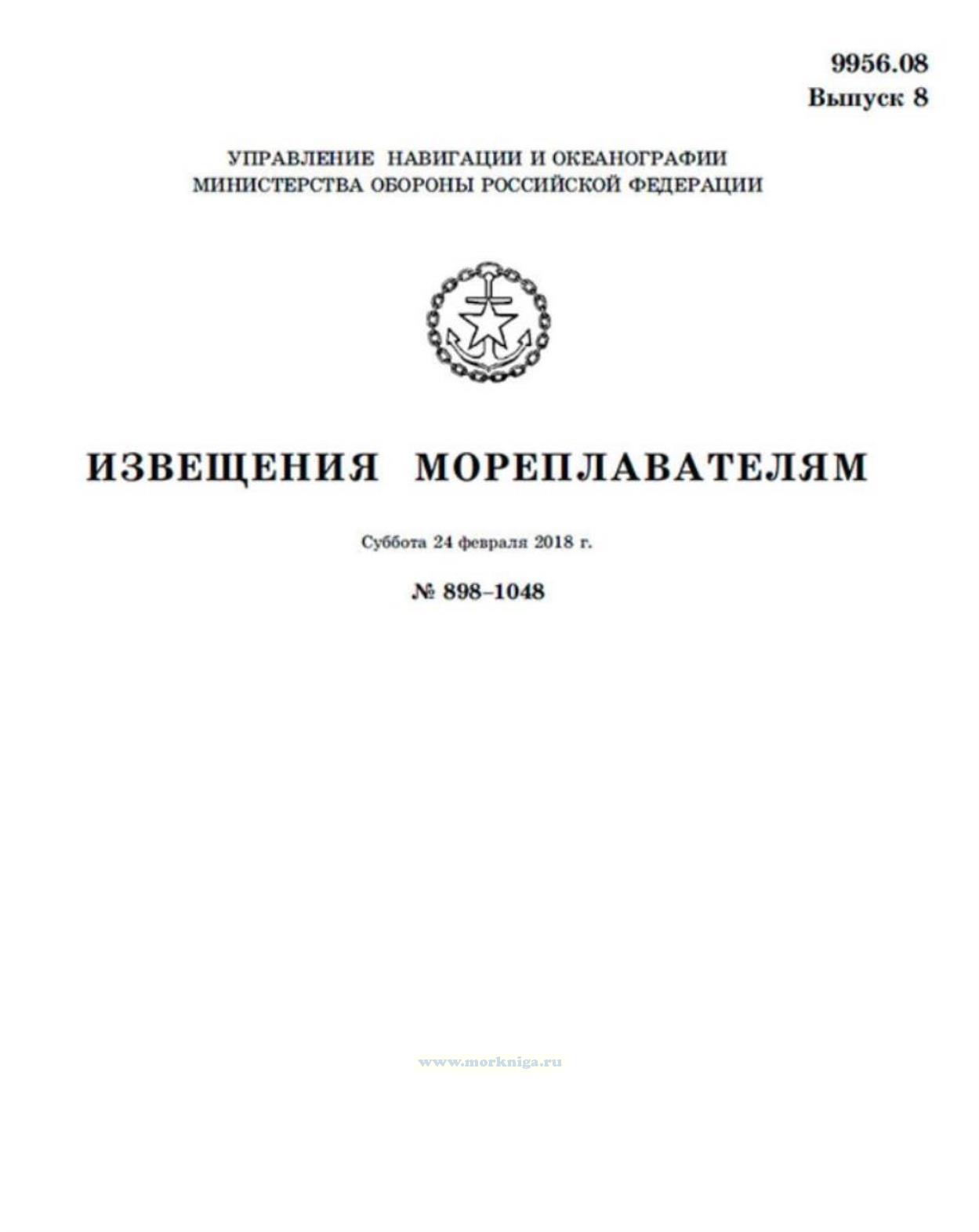 Извещения мореплавателям. Выпуск 8. № 898-1048 (от 24 февраля 2018 г.) Адм. 9956.08