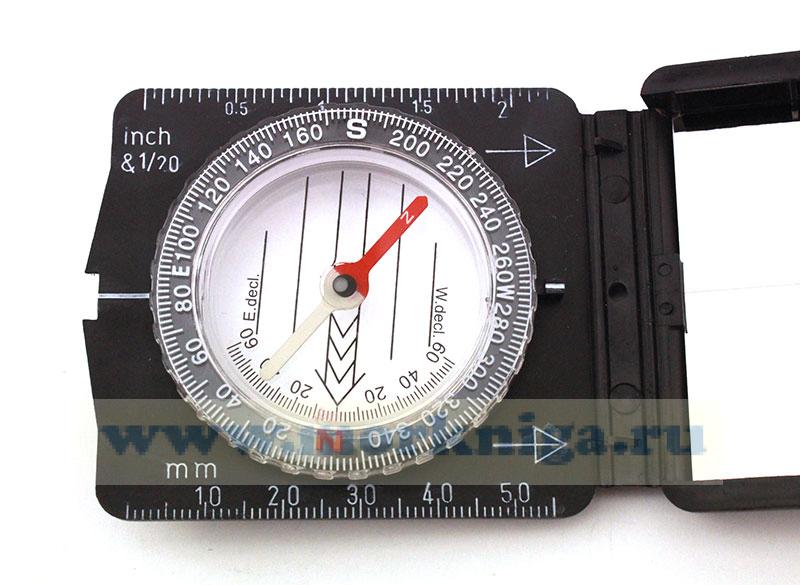 Изделие состоит из компаса, измерительной линейки и зеркала, главным его преимуществом является компактный размер.