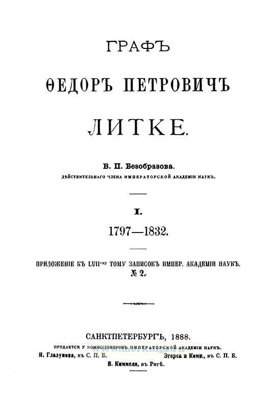 Память о графе Федоре Петровиче Литке, как об одном их замечательных русских деятелей на разных поприщах, в течение всего нынешнего столетия, обязывает к изданию его биографии.