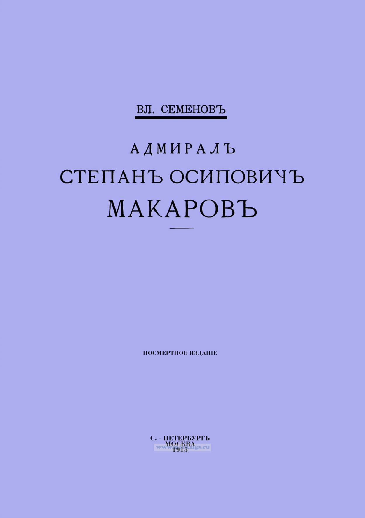 Не берусь писать ни биографии, в тесном смысле этого слова, ни монографии о жизни и деятельности адмирала, образ которого таким ярким световым пятном выделяется на сереньком фоне общего равнения на средину, в затылок и в ранжир, господствовавшего в русском флоте конца XIX века и приведшего к Шантунгу и Цусиме.