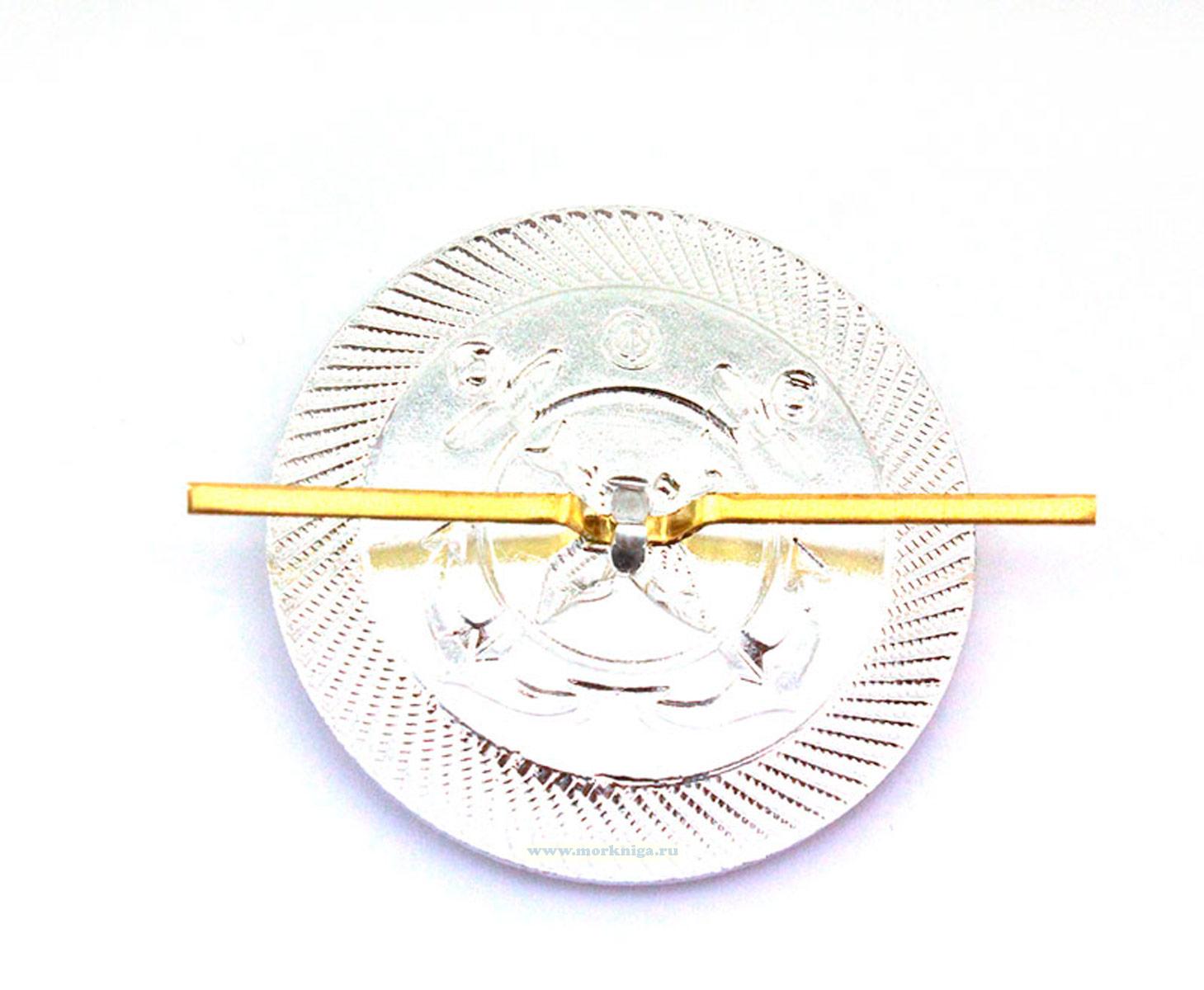 Кокарда курсанта учебных заведений рыболовного флота круглой формы, серебристого цвета. Диаметр: 4,5 см Крепление: клямер