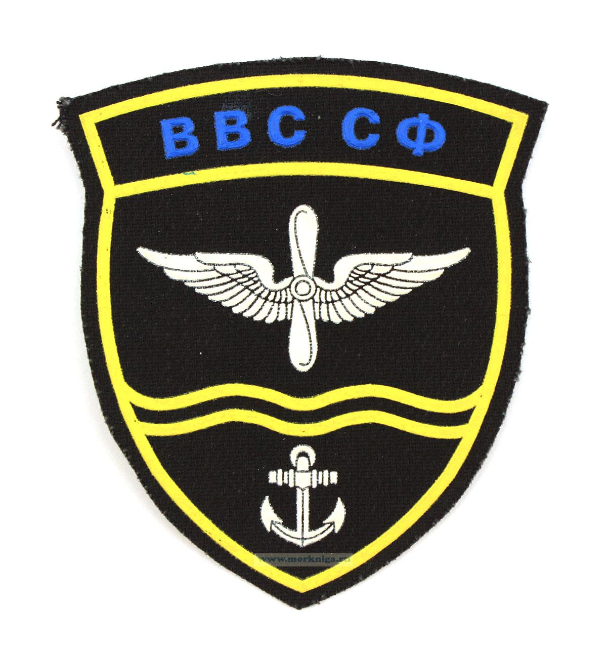 Нашивка нарукавная "ВВС СФ" указывает на принадлежность к военно-воздушным силам Северного флота.