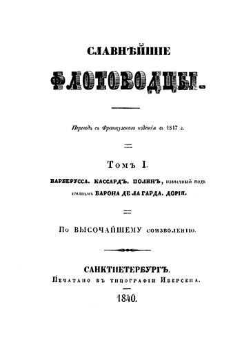 Мы начали Барберуссою, человеком необыкновенным, и надеемся, что публика прочтет его жизнь с удовольствием. Многие неподробно говорили о нем, но чтоб ознакомить с ним, мы держались писателей более заслуживающих вероятия: Павла Жови, Брантома, и прочих его современником, и так сказать свидетелей его подвигов.