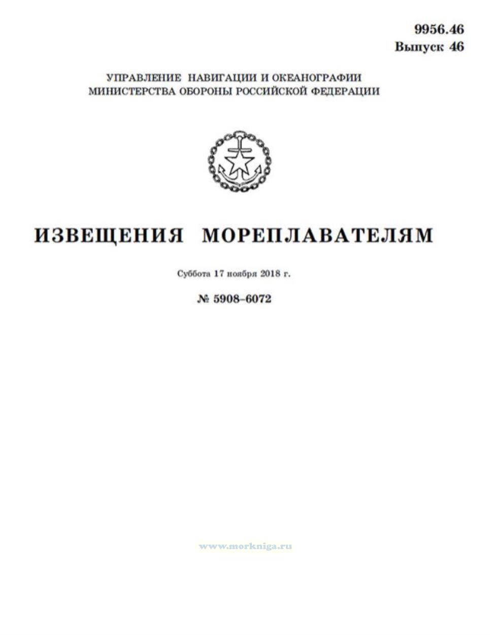 Извещения мореплавателям. Выпуск 46. № 5908-6072 (от 17 ноября 2018 г.) Адм. 9956.46