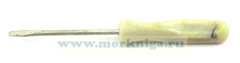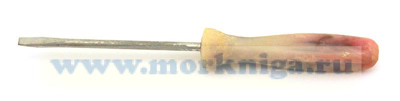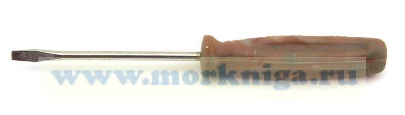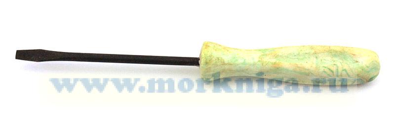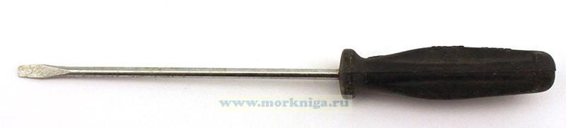 Отвертка шлицевая (плоская) - слесарный инструмент, который предназначен для завинчивания и отвинчивания крепежных изделий с резьбой, на головке которых имеется прямой шлиц. Оснащена диэлектрической ручкой.