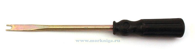 Отвертка u-образная или "Спаннер" имеет жало в виде двух штырей, ее используют при ремонте бытовой техники и лифтов. Благодаря необычной форме инструмента часто удается избежать последствий от действий вандалов. Оснащена диэлектрической ручкой.