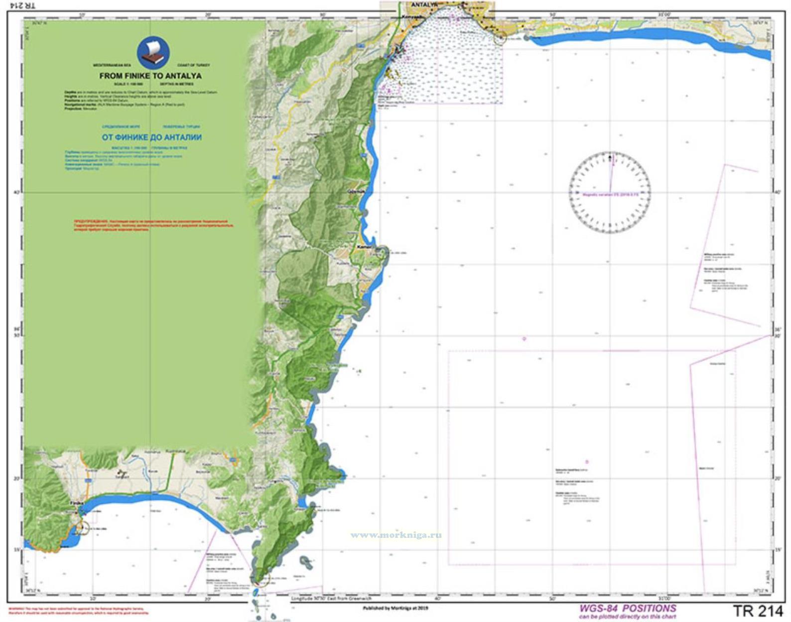 TR 214 Карта побережья Турции от Финике до Анталии. From Finike to Antalya