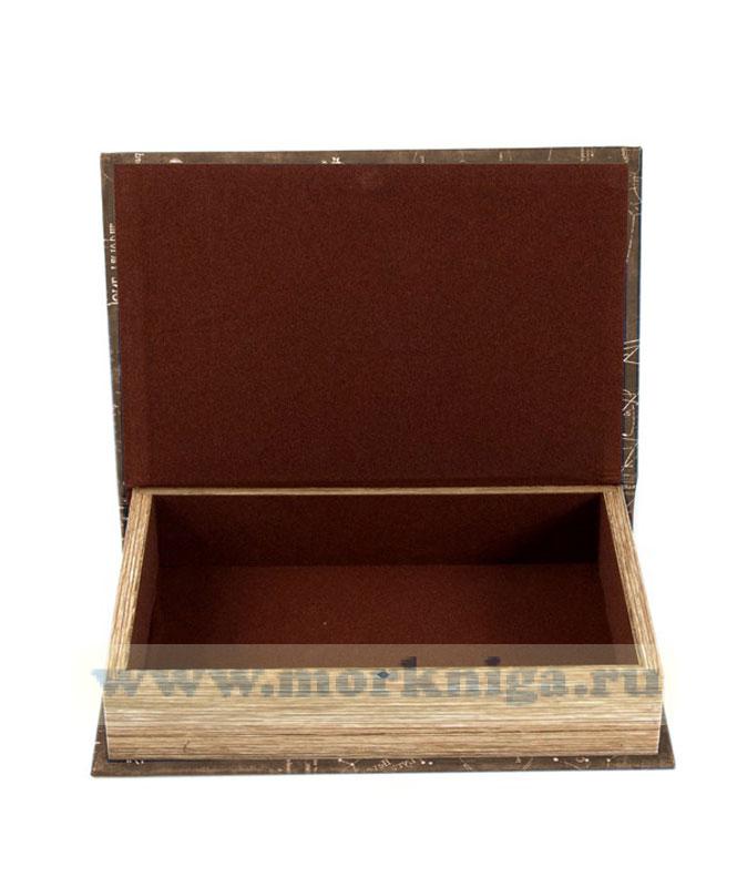 Оригинальное оформление шкатулки, несомненно, привлечет к себе внимание. Поверхность шкатулки-фолианта оформлена изображением старинной карты мира. Внутренняя отделка - кожзаменитель.