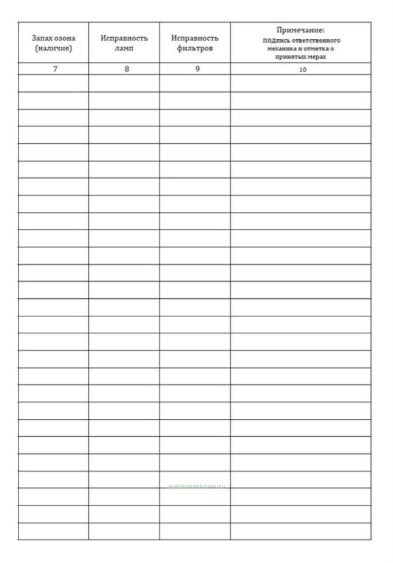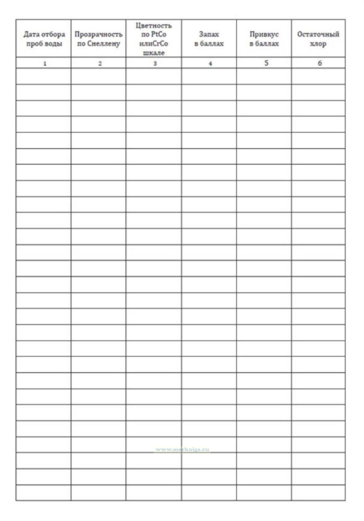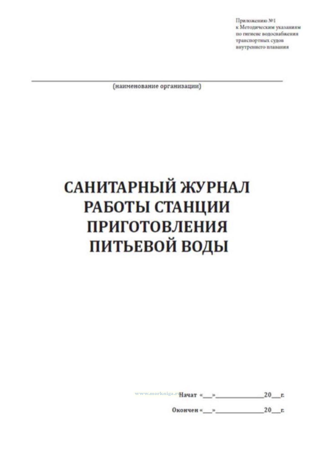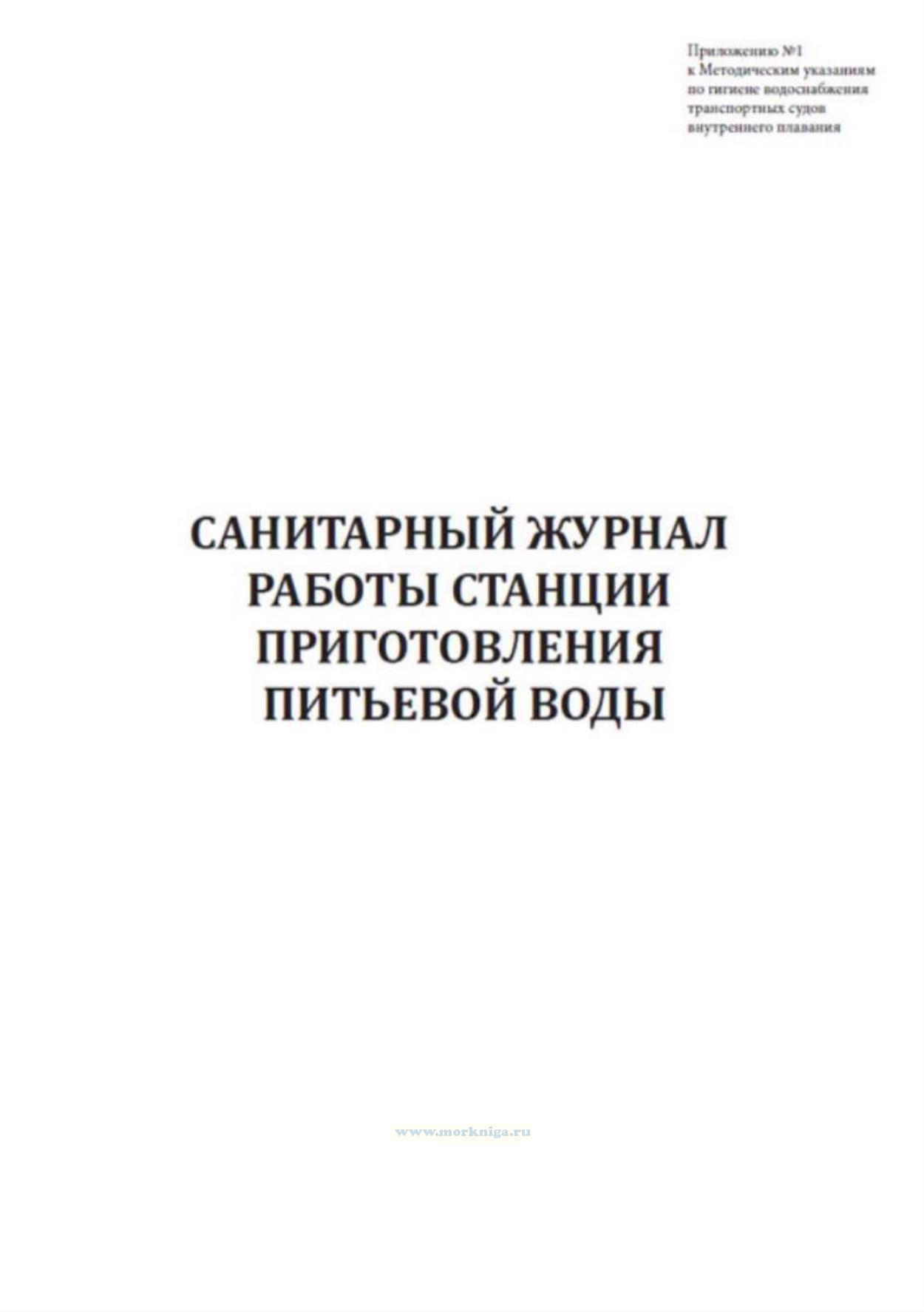 Форма санитарного журнала работы станции приготовления питьевой воды соответствует Приложению №1 к Методическим указаниям по гигиене водоснабжения транспортных судов внутреннего плавания