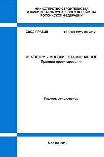 СП 369.1325800.2017 "Платформы морские стационарные. Правила проектирования" утв. приказом Министерства строительства и жилищно-коммунального хозяйства Российской Федерации от 14 декабря 2017 г. № 1670/пр и введен в действие с 15 июня 2018 г.