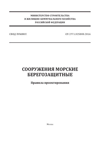 СП 277.1325800.2016 "Сооружения морские берегозащитные. Правила проектирования" утв. Приказом Министерства строительства и жилищно-коммунального хозяйства Российской Федерации от 16 декабря 2016 г. N 963/пр и введен в действие с 17 июня 2017 г.