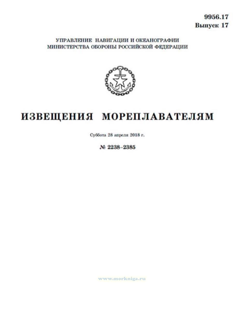 Извещения мореплавателям. Выпуск 17. № 2238-2385 (от 28 апреля 2018 г.) Адм. 9956.17