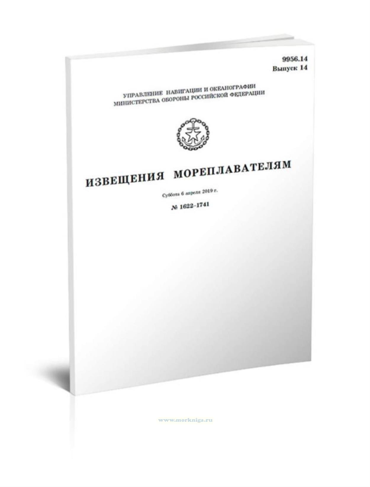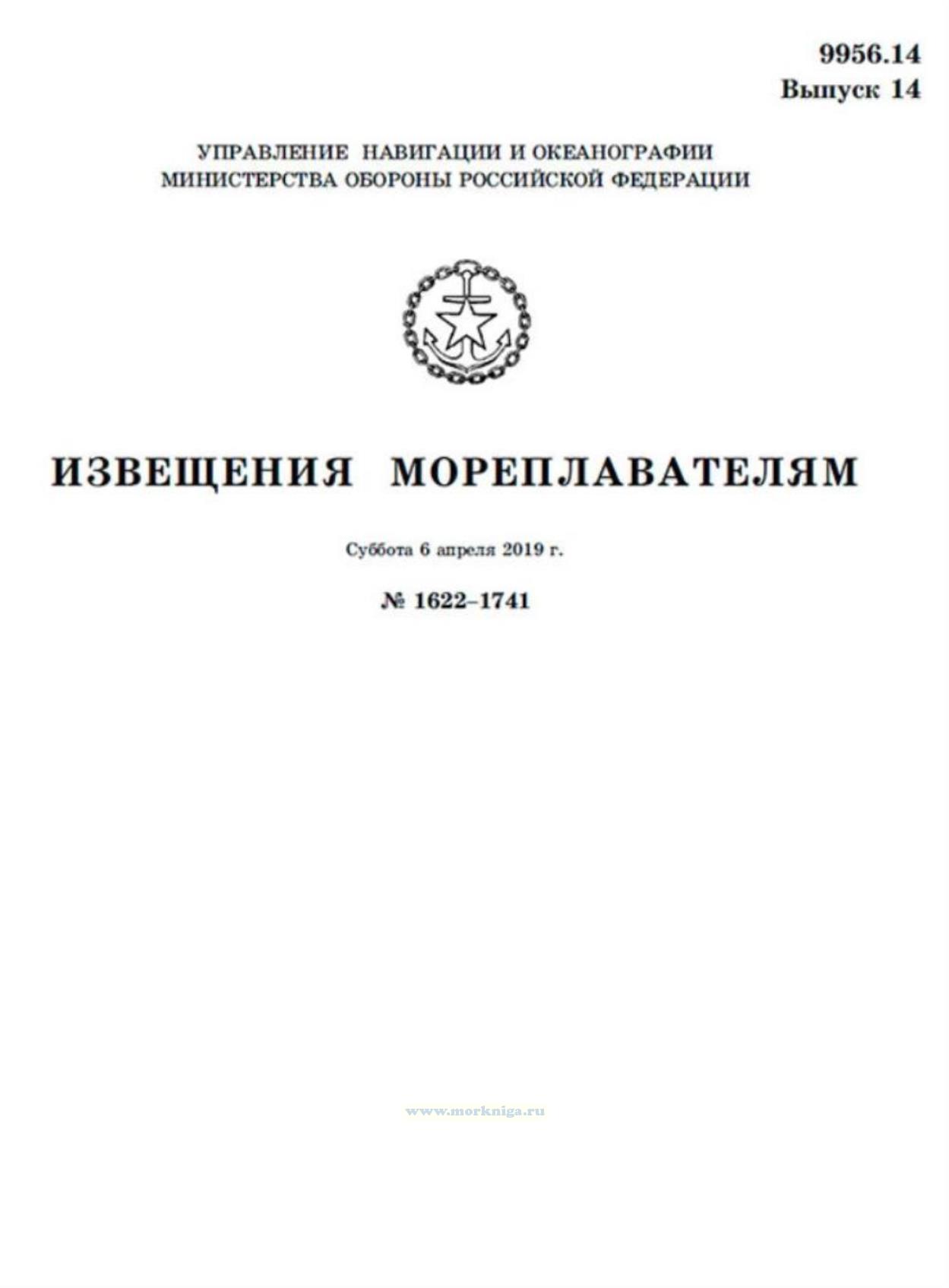 Извещения мореплавателям. Выпуск 14. № 1622-1741 (от 6 апреля 2019 г.) Адм. 9956.14