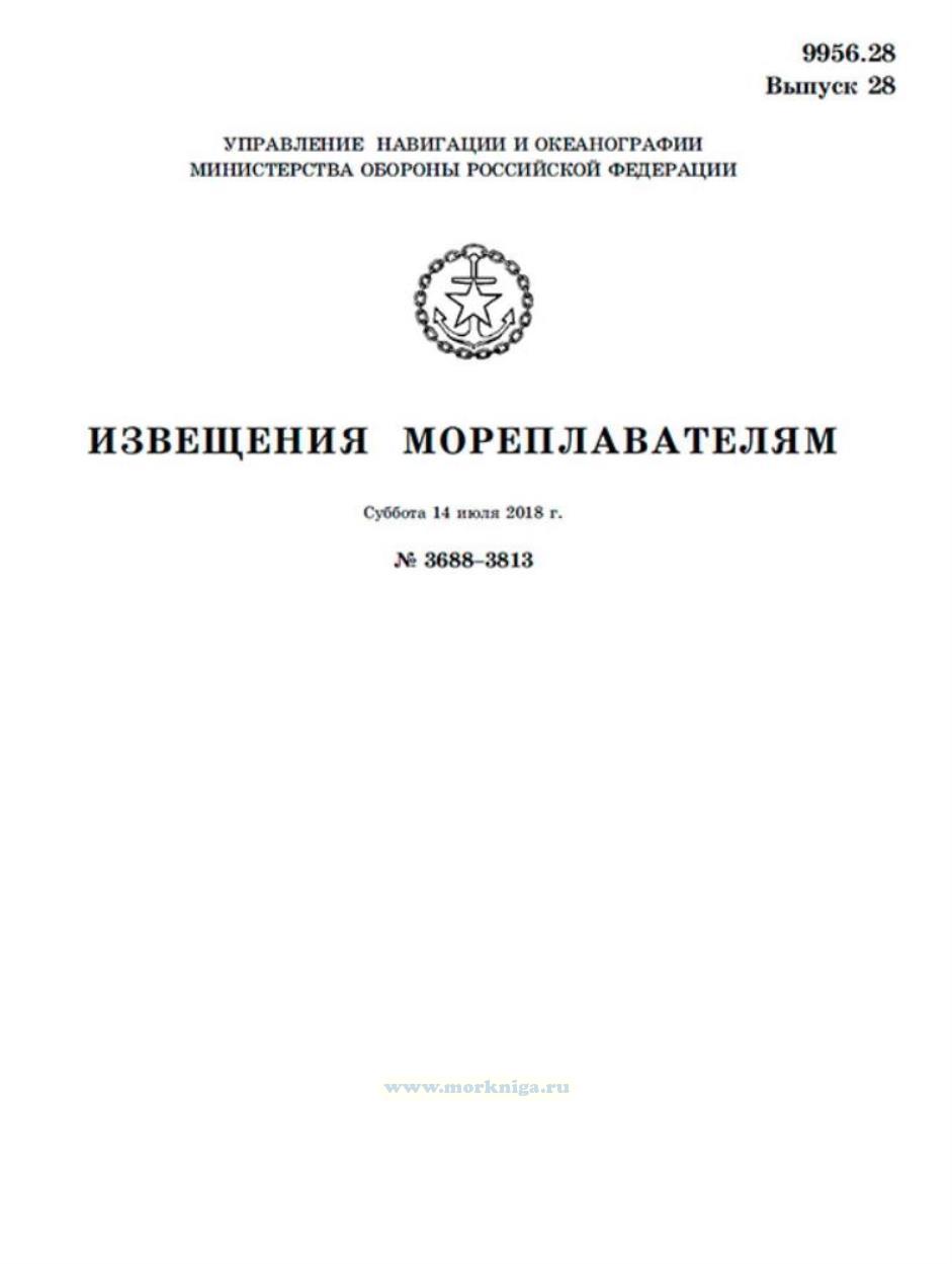 Извещения мореплавателям. Выпуск 28. № 3688--3813 (от 14 июля 2018 г.) Адм. 9956.28