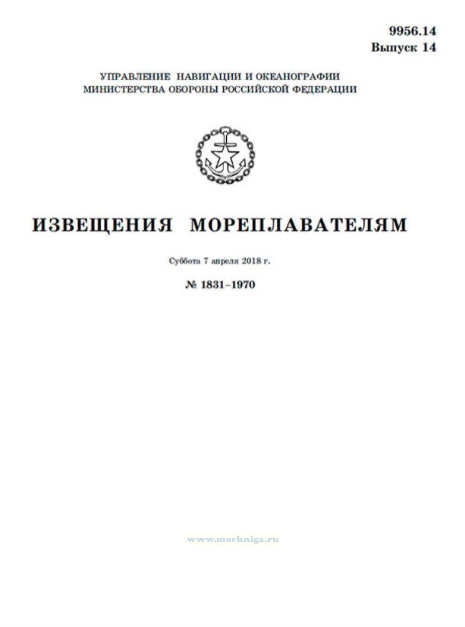 Извещения мореплавателям. Выпуск 14. № 1831-1970 (от 7 апреля 2018 г.) Адм. 9956.14