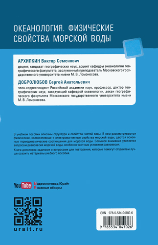 В нем рассматриваются физические, коллигативные и электромагнитные свойства морской воды, даются основные термодинамические соотношения для морской воды.