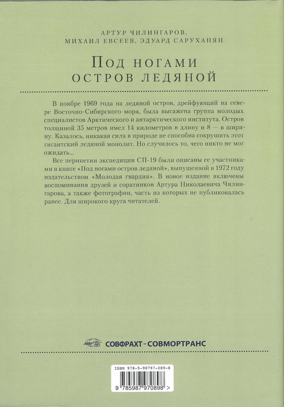 Все перипетии экспедиции СП-19 были описаны ее участниками в книге «Под ногами остров ледяной», выпущенной в 1972 году издательством «Молодая гвардия». В новое издание включены воспоминания друзей и соратников Артура Николаевича Чилингарова, а также фотографии, часть из которых не публиковалась ранее.