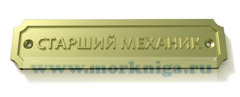 Табличка "Старший механик" создана в золотистом цвете, служит информационным указателем.