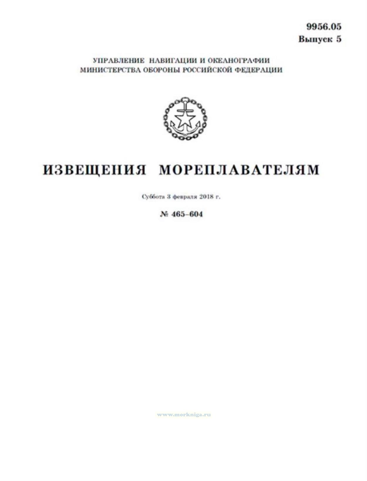 Извещения мореплавателям. Выпуск 5. № 465-604 (от 3 февраля 2018 г.) Адм. 9956.05