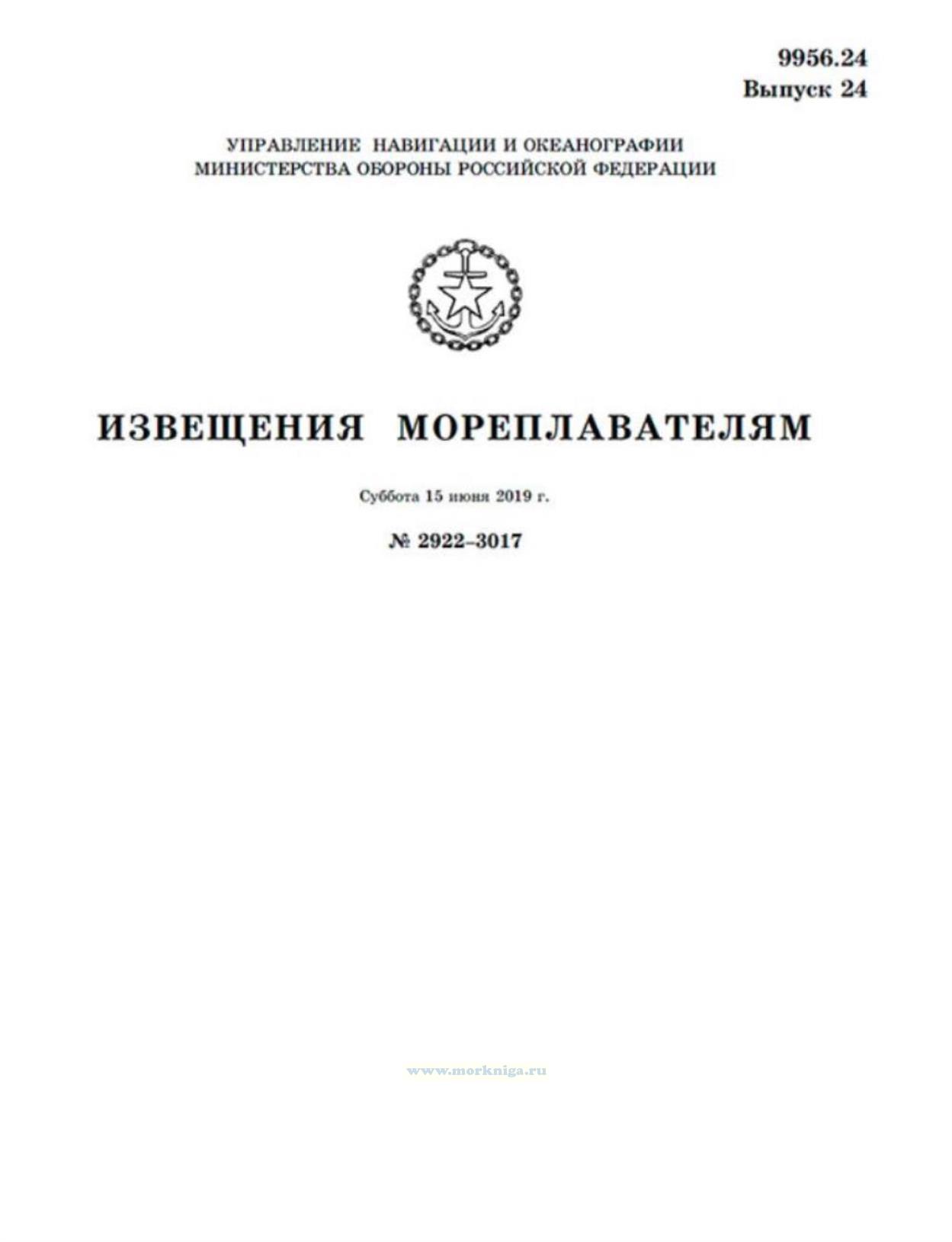 Извещения мореплавателям. Выпуск 24. № 2922-3017 (от 15 июня 2019 г.) Адм. 9956.24