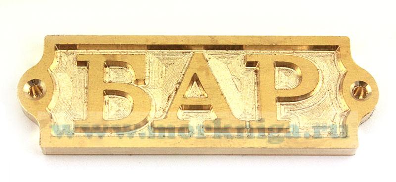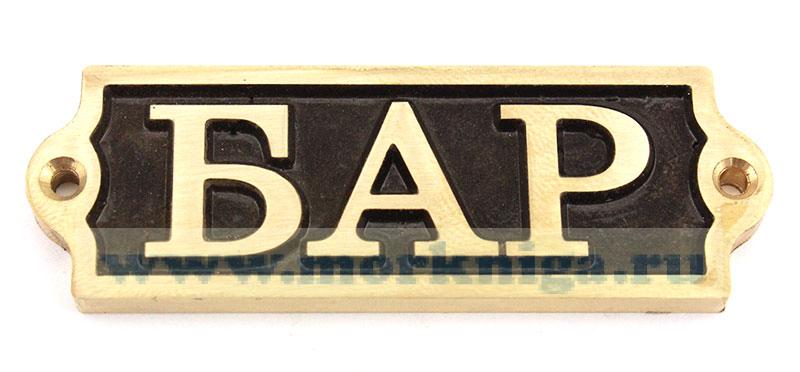 Табличка "БАР" создана в золотистом цвете, служит одновременно украшением и информационным указателем.