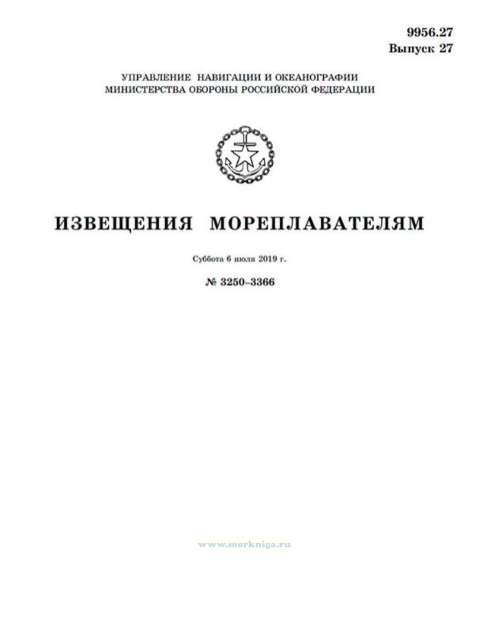 Извещения мореплавателям. Выпуск 27. № 3250-3366 (от 6 июля 2019 г.) Адм. 9956.27