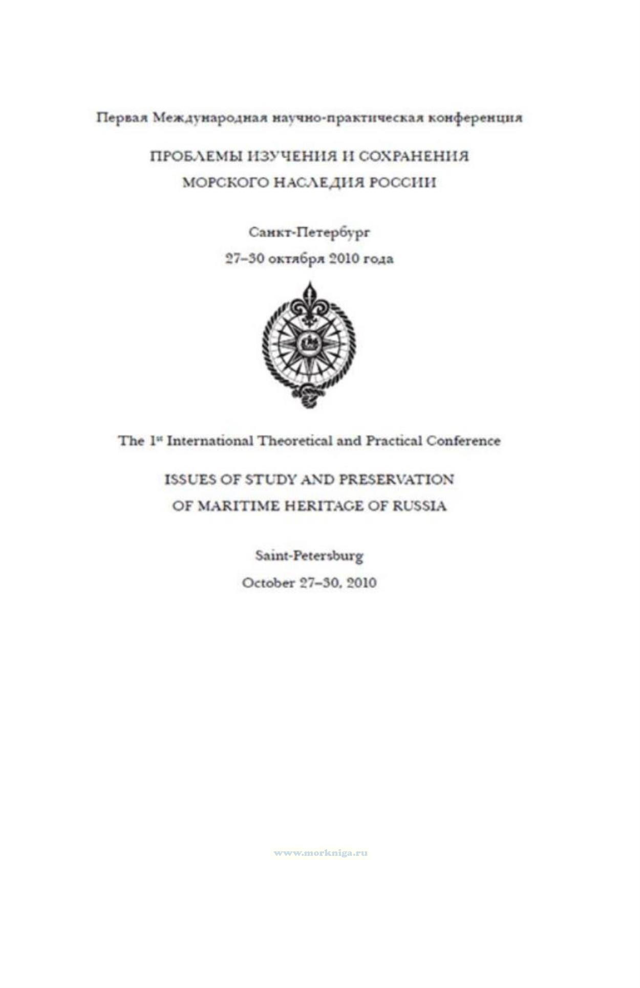 В сборнике представлены доклады Первой Международной научно-практической конференции «Проблемы изучения и сохранения морского наследия России», прошедшей в Санкт-Петербурге 27-30 октября 2010 года.