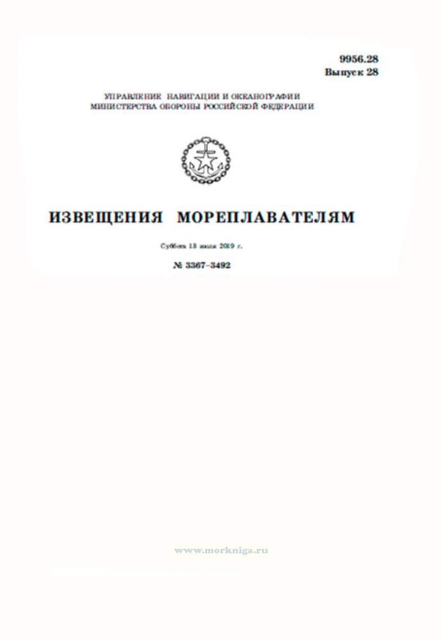 Извещения мореплавателям. Выпуск 28. № 3367-3492 (от 13 июля 2019 г.) Адм. 9956.28