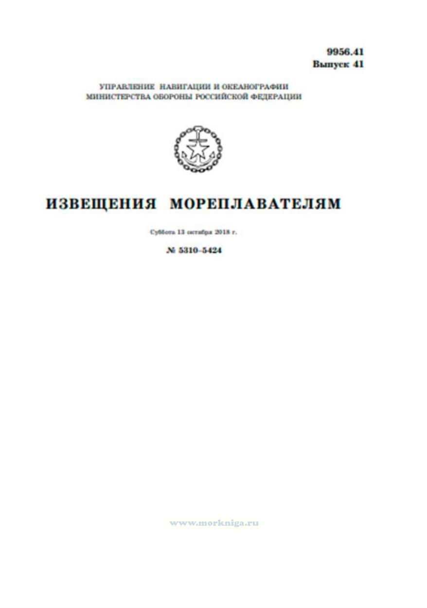 • Извещения мореплавателям. Выпуск 41. № 5310-5424 (от 13 октября 2018 г.) Адм. 9956.41