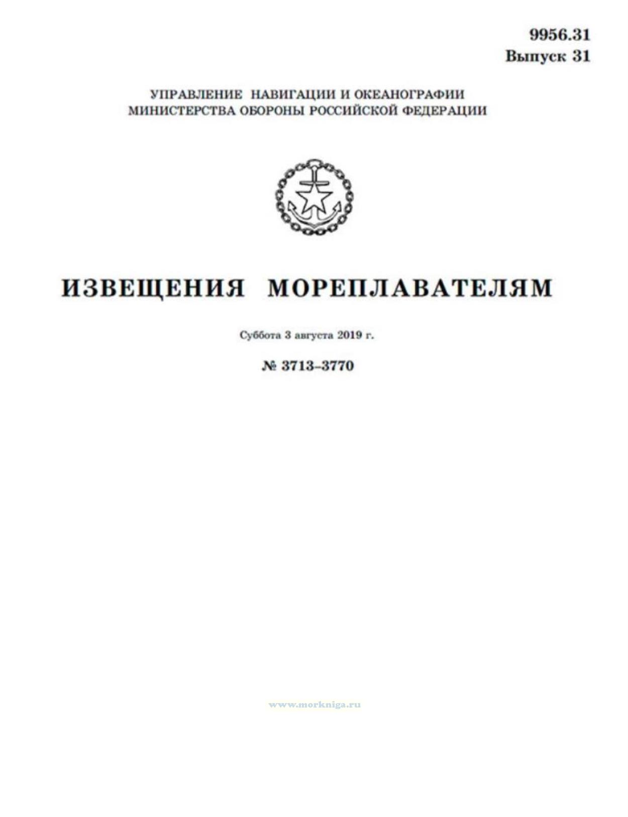 Извещения мореплавателям. Выпуск 31. № 3713-3770 (от 3 августа 2019 г.) Адм. 9956.31