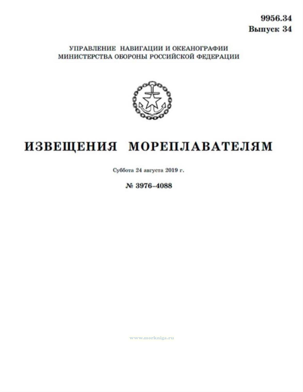 Извещения мореплавателям. Выпуск 34. № 3976-4088 (от 24 августа 2019 г.) Адм. 9956.34