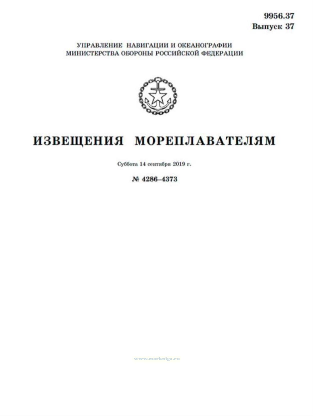 Извещения мореплавателям. Выпуск 37. № 4286-4373 (от 14 сентября 2019 г.) Адм. 9956.37