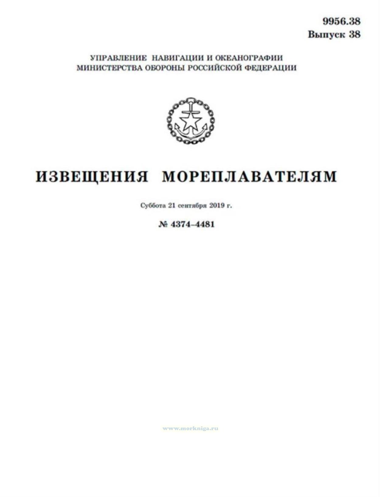 Извещения мореплавателям. Выпуск 38. № 4374-4481 (от 21 сентября 2019 г.) Адм. 9956.38
