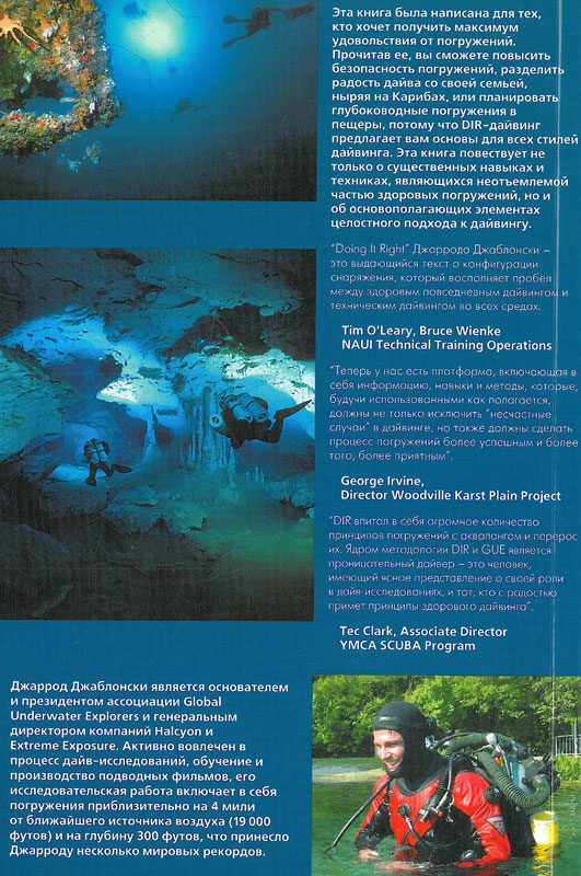 Прочитав ее, вы сможете повысить безопасность погружений, разделить радость дайва со своей семьей, ныряя на Карибах, или планировать глубоководные погружения в пещеры, потому что DIR-дайвинг предлагает вам основы для всех стилей дайвинга. Эта книга повествует не только о существенных навыках и техниках, являющихся неотъемлемой частью здоровых погружений, но и об основополагающих элементах целостного подхода к дайвингу.