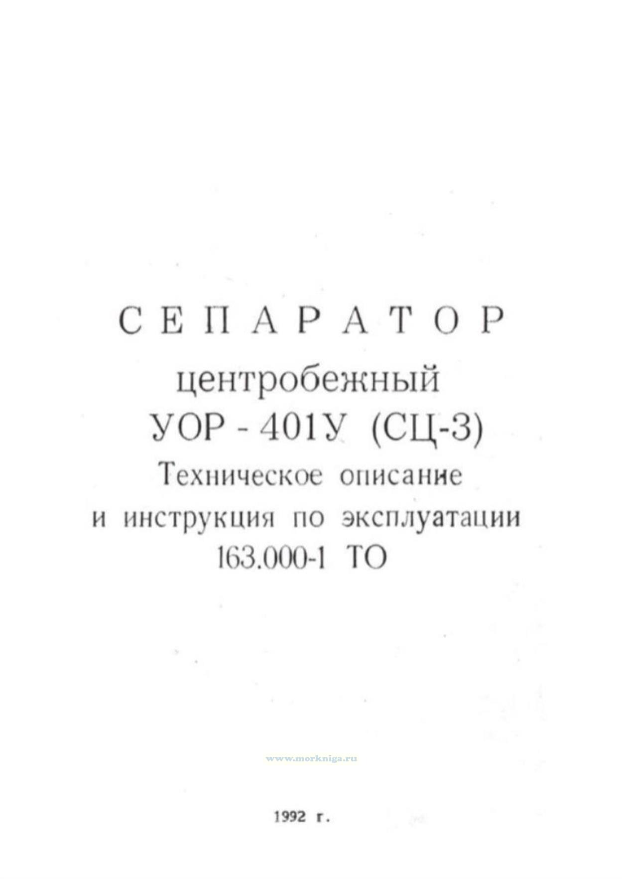 При изучении конструкции сепаратора, кроме настоящего описания, необходимо пользоваться соответствующей технической документацией на электрооборудование, входящей в комплект поставки изделия.