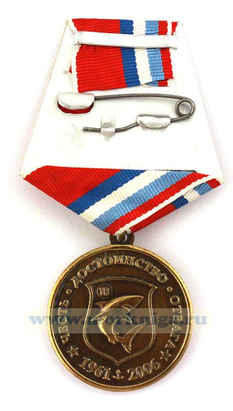 Медаль "18 дивизия подводных лодок СФ" изготовлена из сплава металла.